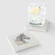 Un dessous de verre en pierre avec une belle illustration d'une tête de cheval noire avec un bouquet floral fantaisiste au cou. Peinture animale élégante et classe.