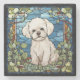 Grand dessous de verre en pierre avec un chien Bichon Frise dans le style d'un vitrail.