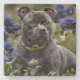 Dessous-de-verre En Pierre "Blue Brindle Beauty : Un Staffy en Rose bleu