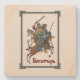 Une représentation d'une bataille entre un bogatyr russe et un guerrier asiatique, tous deux à cheval. Le texte cyrillique (russe) qui se lit "Б о г т ы р" (Bogatyr) apparaît également. Les Bogatyri sont des personnages héroïques trouvés dans les épopées slaves médiévales. Ils ressemblent aux chevaliers errants de la littérature occidentale. La plupart des histoires de bogatyri tournent autour du tribunal de Vladimir Ier de Kiev (958-1015). Certains bogatyri sont considérés comme des figures historiques. Bogatyri protégeait la terre et le peuple russes contre les envahisseurs, en particulier les Tatars. Certains se sont vus attribuer des pouvoirs et des forces presque divines. Cette image est adaptée d'un dessin en noir et blanc dans "П о в с т ь de de de de de de de de de de de de de de de de de de de de de de de de de la ville d'or" (A Tale ev et le Grand Fléau de la Terre Russe) par Tamara Likhiotal ; publié en URSS en 1974.