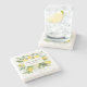 Ce dessous de verre en pierre botanique au citron fait un cadeau mariage unique. Ce modèle design boho dispose d'un cadre carré de citrons peints à la main avec des fleurs blanches et de la verdure. Personnalisez avec vos noms et date mariage dans une typographie en script noir. Consultez notre boutique I Love Weddingz pour en savoir plus sur cette collection. Conçu par Susan Coffey.