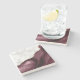 Ce dessous de verre élégant est doté d'une image numérique de marbre blanc et d'agate bordeaux bordés de parties scintillant en faux or.