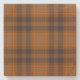 Gorgeous and stylish dark brown, orange and blue Scottish style checkered stone coaster for safe Christmas party. Wishing you a colourful and joyful celebration!