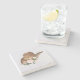 Un dessous de verre en pierre avec un design mignon créé avec des aquarelles avec une casquette de cowgirl marron avec un bouquet de fleurs roses sur le bord.