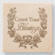 L'image vintage sur ce dessous de verre dit "Comptez vos bénédictions", ce qui est un bon message à retenir pour tout le monde.