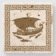Conception principale grecque classique avec le bateau grec de voile et les dauphins espiègles.