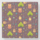 Dessous de verre en pierre conçu avec un joli motif de camping. Camping des objets thématiques comme un feu de camp orange, une tente verte, une guitare acoustique et d'autres éléments de nature comme des arbres, des feuilles, mais aussi un sac à dos, une pelle et une cantine. motif extérieur cool.