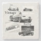 Une variété de voitures de course vintages représentées dans un style vintage.