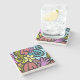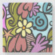 Cubisme Abstrait moderne dessous de verre en marbre d'art. (Vient aussi dans le calcaire, la travertine et le grès.) L'art moderne multicolore présente des images abstraites de fleurs, de visage, d'oeil, de rayures et de rouleaux dans les bleus, les verts, les violets, le jaune, rose poussiéreux et la rouille soulignés dans d'épaisses lignes noires. Met en valeur votre décor de maison. Personnalisez-le en changeant ou en ajoutant du texte et des images de votre propre.