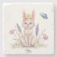 Add a charming seasonal accent to your table with this stone coaster featuring a whimsical Easter cat illustration. The playful design shows a curious cat wearing bunny ears, with a tiny chick perched on its head and a butterfly fluttering nearby among delicate spring flowers. The scene captures the joyful spirit of Easter and the gentle beauty of spring.