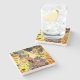 Dessous de verre en pierre avec la peinture à l’huile de Gustav Klimt Lady with Fan (1918). Une femme portant un kimono bleu tient un ventilateur rouge contre un arrière - plan jaune coloré de fleurs et de paons. Un grand cadeau pour les amateurs de Japonisme et d'art européen.
