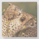 Dessous de verre en pierre montrés avec une copie de photo du guépard sauvage. Choisissez de quatre grands types en pierre. Customisez cet article ou l'achetez comme est.