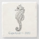 N'oubliez pas votre lieu de vacances d'été avec ce dessous de verre souvenir boisson. Marbre de pierre blanche avec empreinte Seahorse, emplacement et année. Changez de lieu et d'année pour en faire votre propre.
