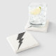 Dessous de verre de pierre à boulon Flash noir. Logo simple tunderbolt noir sur arrière - plan blanc.