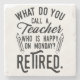Professeur retraité qui dit que c'est parfait pour le cadeau de départ à la retraite pour votre collègue préféré qui a un bon sens de l'humour. Le dicton sur ce cadeau pédagogique moderne à la retraite dit : "Comment appelez-vous un enseignant qui est heureux lundi? Retraité." Consultez notre magasin pour d'autres cadeaux et accessoires de retraite pour votre enseignant préféré ou le chef de l'école le parti de départ à la retraite