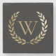 Cet élégant dessous de verre en pierre personnalisée présente un faux monogramme d'or encadré d'une couronne de laurier d'or sur un simple arrière - plan noir. Conçu par Susan Coffey.