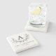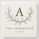 Élégants dessous de verre en pierre botanique avec votre monogramme à initiale unique entouré d'une vigne de feuilles avec votre nom de famille et l'année affichés en dessous. Les dessous de verre monogrammes font le cadeau parfait de fiançailles, de mariage ou de Noël !
