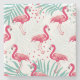 Dessous-de-verre En Pierre Flamingo tropical et feuille, motif d'été.