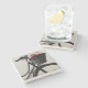 Dessous de verre en pierre élégants avec les graphiques numériques de la silhouette d'un panier de bicyclette avec les fleurs roses, dans lui. Customisez pour ajouter n'importe quel texte que vous voulez. Fait une belle idée de cadeau.