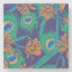 Le beau motif tropical des oiseaux | avec les fleurs et le paon rouges fait varier le pas sur un arrière - plan bleu-foncé. © et ® Bigstock® - tous droits réservés.