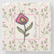 Dessous de verre avec votre nom customisé ou autre texte et une jolie fleur rose à l'intérieur d'un cadre carré avec une bordure rose. L'arrière - plan est un motif avec des fleurs sauvages roses dessinés à la main avec de longues tiges vertes et des feuilles sur un arrière - plan blanc en coquille d'oeuf. Des cercles roses et des sprigs décorent également le design. Design Whimsical et joli à fleurs.