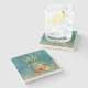 Dessous-de-verre En Pierre Fleurs tropicales de l'Hibiscus de l'ananas turquo
