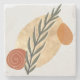 Un design d'inspiration boho aux formes simples dans des couleurs rustiques de marron, beige et orange avec une tige plante fleurie au centre de l'attention.