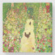 Dessous de verre en pierre avec peinture à l’huile de Gustav Klimt Jardin aux coqs (1917). Deux poulets bruns se dressent sur un chemin de jardin. De belles fleurs roses, rouges et blanches fleurissent le long du chemin. Un grand cadeau pour les amateurs d'art Art Nouveau et autrichien.