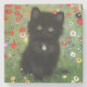 Dessous de verre en pierre avec un chaton Gustav Klimt ! Ce chaton noir porte un collier d'argent et s'assoit dans un champ de fleurs rouges, bleues, blanches et jaunes. Un cadeau merveilleux pour les amateurs d'art amoureux des chats et autrichiens !