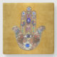 Dessous-de-verre En Pierre Hamsa Coeurs Fleurs Opal Art sur Or