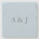 Dessous de verre en pierre bleu ciel avec initiales personnalisées simples. Texte gris.