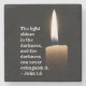 Le dessous de verre en pierre d'inspiration des Écritures représente un arrière - plan noir à la chandelle brillante. Il présente la Bible Verse Jean 1:5 "La lumière brille dans l'obscurité, et l'obscurité ne peut jamais l'éteindre."
