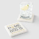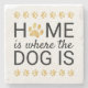 Ajoutez un style élégant à votre décor de maison et protégez vos meubles avec ce dessous de verre graphique mignon et amusant qui contient les mots "la maison est où le chien est" dans la typographie script moderne, y compris un empreinte de patte en feuille d'or métallique pour le "o" dans "la maison" et empreintes de pattes ambulants.