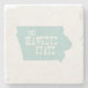 Avec la forme silhouette plan de l'Iowa remplie avec un arrière - plan vert clair solide et les états surnom Hawkeye State écrit dans ce dessous de verre de pierre surnom Iowa est parfait pour protéger vos meubles contre les bagues de condensation de boissons froides glacées.