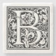 Une lettre vintage en noir et blanc "B" au design floral feuillu.