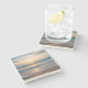 Dessous de verre en pierre avec lever de soleil sur la plage design. IA générée.