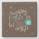 Un dessous de verre moderne en pierre de Noël avec une tasse de chocolat chaud à la vapeur et une ligne de mon poème original qui dit "lumières scintillantes et nuits de cacao chaud". Le design de texte tendance en bleu turquoise, cacao et blanc est mis en valeur par des étoiles sur un arrière - plan chocolat. Recherchez ID593 pour voir tous les produits de coordination pour ce mix n'match design set.