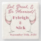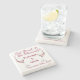 C'est un dessous de verre en pierre avec un thème "Manger, Boire & être Marié" avec une illustration de verre à vin. Il comprend des champs de texte pour une citation, des noms et des dates. Envoyez un message à MineByDesign et nous pourrons vous aider à personnaliser n'importe quel design que vous imaginez.