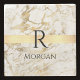 Dessous-de-verre En Pierre Marbre blanc et or, Nom noir et Monogramme