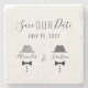 Simple, minimaliste moderne mariage gay noir et blanc sauver le dessous de verre de date invitation pierre, avec vintage chic casquettes et arc cravates dessin monogrammes.