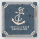 Dessous-de-verre En Pierre Marine Bleu & Blanc Nautique Ancre & Cadre