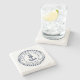 Ajoutez une touche personnalisée cool à votre bateau de pêche, voilier, yacht ou bateau domestique avec ces dessous de verre en pierre personnalisés. Le design nautique classique en bleu marine et blanc présente votre nom de bateau et le registre du navire courbé à l'intérieur d'un logo de corde avec une illustration d'ancre au centre.