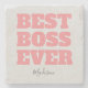 Surprenez votre patron et montrez-lui à quel point vous vous souciez de ce Dessous de verre en pierre personnalisée avec ce Best Boss Ever Pink Typography Script. Il est conçu avec "Best Boss Ever" en gras bloc rose corail lettrage sur l'arrière - plan blanc et est personnalisé avec le nom dans le script à la main tendance. CLIQUEZ SUR PERSONNALISER L'OPTION MODÈLE ET ENTREZ LE NOM.
