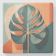 Orange and teal colorway. A solo modern stylized monstera leaf is composed on an abstract background. The design is reminiscent of the flowers used in vintage aloha shirts in the forties & fifties.