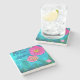 Dessous de verre en pierre personnalisée, avec un art médiatique mixte avec des fleurs.
