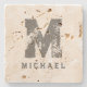 Dessous-de-verre En Pierre Monogramme Modèle initial Élégant Cool Travertine