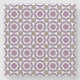 Une maquette montre un verre de liquide clair avec un quartier de citron vert sur un dessous de verre présentant un motif géométrique violet. Le même motif est affiché ci-dessous. Élégant et moderne.