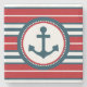 Design nautique avec décoration d'ancre en forme ronde sur arrière - plan rayé rouge, bleu et blanc