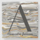 Or noir, blanc et parties scintillant marbré en combinaison avec l'initiale géant - monogramme et nom complet au fond. Dessous de verre en pierre moderne, élégant, chic, monogrammed.