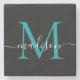 Elégant Noir Turquoise Aqua Vert Monogramme Feminine Script Nom Dessous de verre de pierre